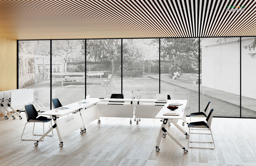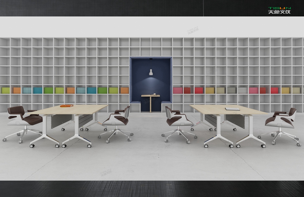 From the concept of "four flat and eight stable", the overall fashion conference table composed of table legs and simple lines is designed to create a harmonious atmosphere for the conference space. A meeting means the beginning of a challenge, the challenge needs a good environment, which is enough to make you confident to meet the challenge of innovation again and again in the work.
