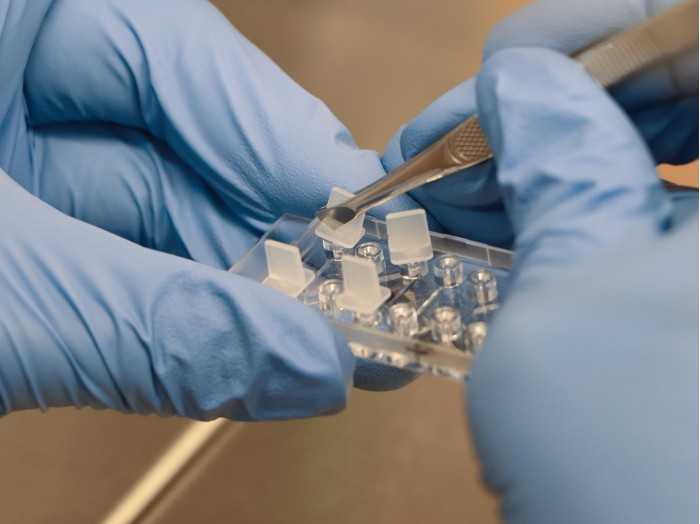 搭配微量分注器使用于兩側(cè)60 μL儲(chǔ)液槽中制造出化學(xué)物質(zhì)的線性濃度梯度,此時(shí)嵌入在儲(chǔ)液槽中間觀察管道基質(zhì)膠中的細(xì)胞即處于一穩(wěn)定的線性濃度梯度培養(yǎng)環(huán)境中。